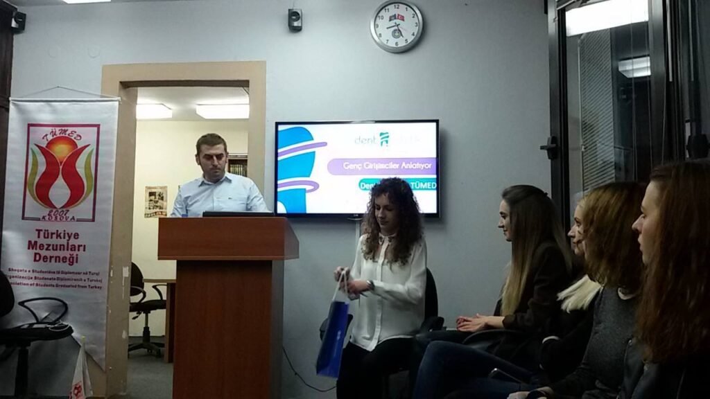 Faaliyet Türkiye Mezunumuz Dt. Şenol Kaçamak ve Dent Estetik ekibi Dt. Canan Rada ve Dt. Sırma Bilurdagi diş sağlığı üzerine mezunlarımıza sunum gerçekleştirdi. by TÜMED 29 Nisan 2017 written by TÜMED 29 Nisan 2017 70 0 comment 0 FacebookTwitterPinterestEmail TÜMED previous post TİKA Koordinatörü sayın Necip Özay Özütok’a ziyaret. next post Si-Ser şirket sahibi Türkiye Mezunumuz sayın Erkan Başa başarı hikayesini mezunlarımız ile paylaştı. Related Posts Genç Mezunlarla Buluşma 20 Temmuz 2025 “Yapay Zeka ile Sosyal Medya ve Pazarlama” EĞİTİM... 20 Haziran 2025 Kosova Türk Temsil Heyet Başkanlığı Ziyareti. 2 Mayıs 2025 “Sosyal Medya & Pazarlama, Dijital Pazarlama ve Grafik... 3 Nisan 2025 Taziye Mesajı 27 Mart 2025 KOSOVA TÜRKİYE MEZUNLARI İFTAR SOFRASINDA BİR ARAYA GELDİ. 14 Mart 2025 Derneğimizin kurucu üyelerinden, Türkiye Mezunumuz Orhan Lopar’a yeni... 7 Mart 2025 Başsağlığı 24 Ocak 2025 PRİŞTİNE BÜYÜKELÇİLİĞİNDE MEZUNLAR BULUŞMASI 22 Ocak 2025 Kosova’da Türk Toplumunun Temel Hakları ve Türkçe Konferansı 24 Aralık 2024