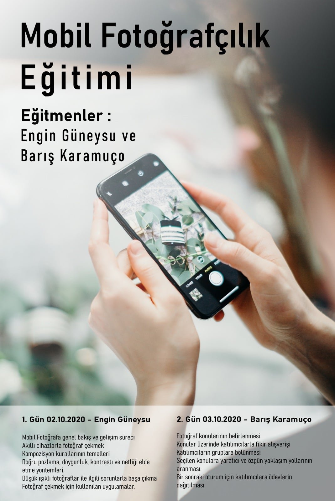‘’ Cep Telefonu Fotoğrafçılığı ‘’ atölyesinde işlenilecekler: