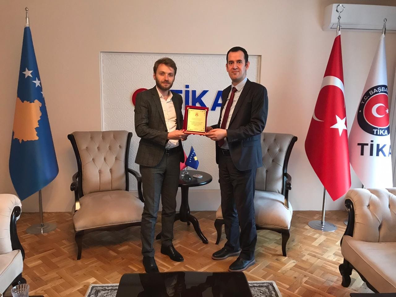 TİKA Kosova Koordinatörü Sn. Hasan Burak CERAN’ın görev süresinin sona ermesi nedeniyle gerçekleştirdiğimiz ziyarette Türkiye Mezunları Derneği’ne sunmuş oldukları desteklerden dolayı teşekkür plaketini takdim ettik.