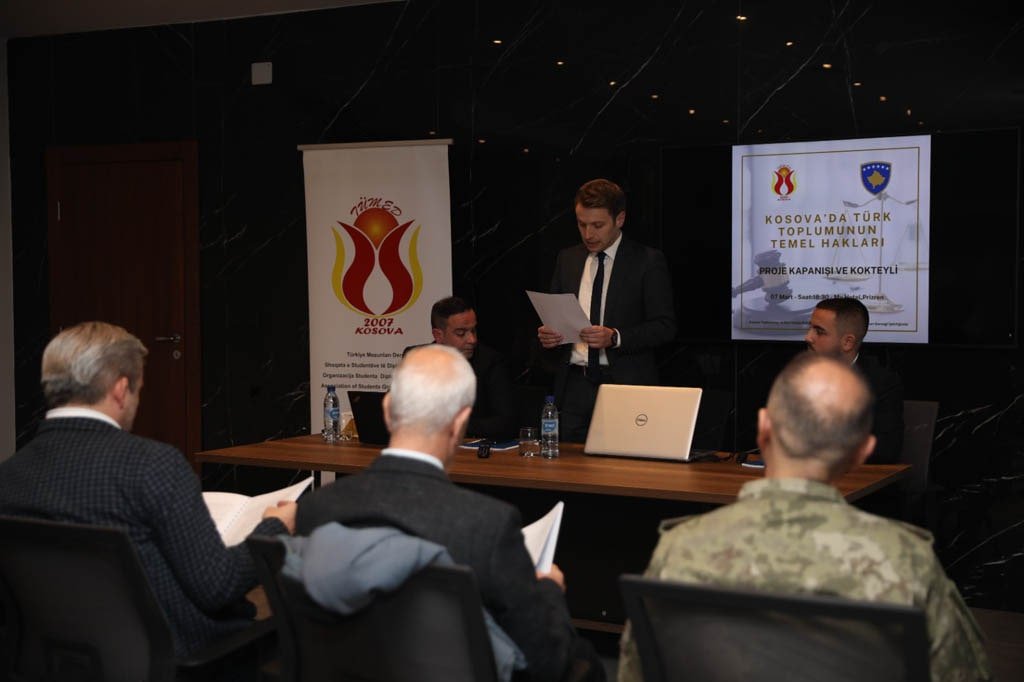 Türkiye Mezunlar Derneği olarak Kosova Topluluklar ve Geri Dönüş Bakanlığının destekleriyle başlatmış olduğumuz “Kosova’da Türk Toplumunun Temel Hakları” konulu projemizin kapanış etkinliği kapsamında yaptığımız sonuç bildirilerinin okunmasını 07.03.2024 tarihinde gerçekleştirdik.